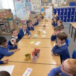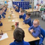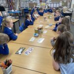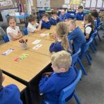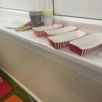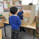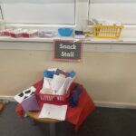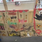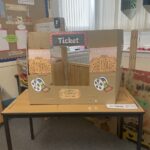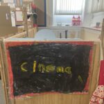 We then worked in groups to create the haunted cinema. Some of us painted cardboard to be the outside spooky cinema building and some of us painted scary characters to decorate the inside. We discussed that we need tickets and money and a group of us made those. We made promotional posters which we will display to show which films are on in the cinema and we were very creative in making lots of snacks for the snack stall. We now have lots of popcorn, sweets, chocolate and drinks we can buy when we go to watch a film.