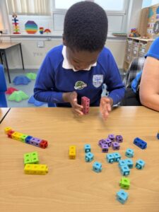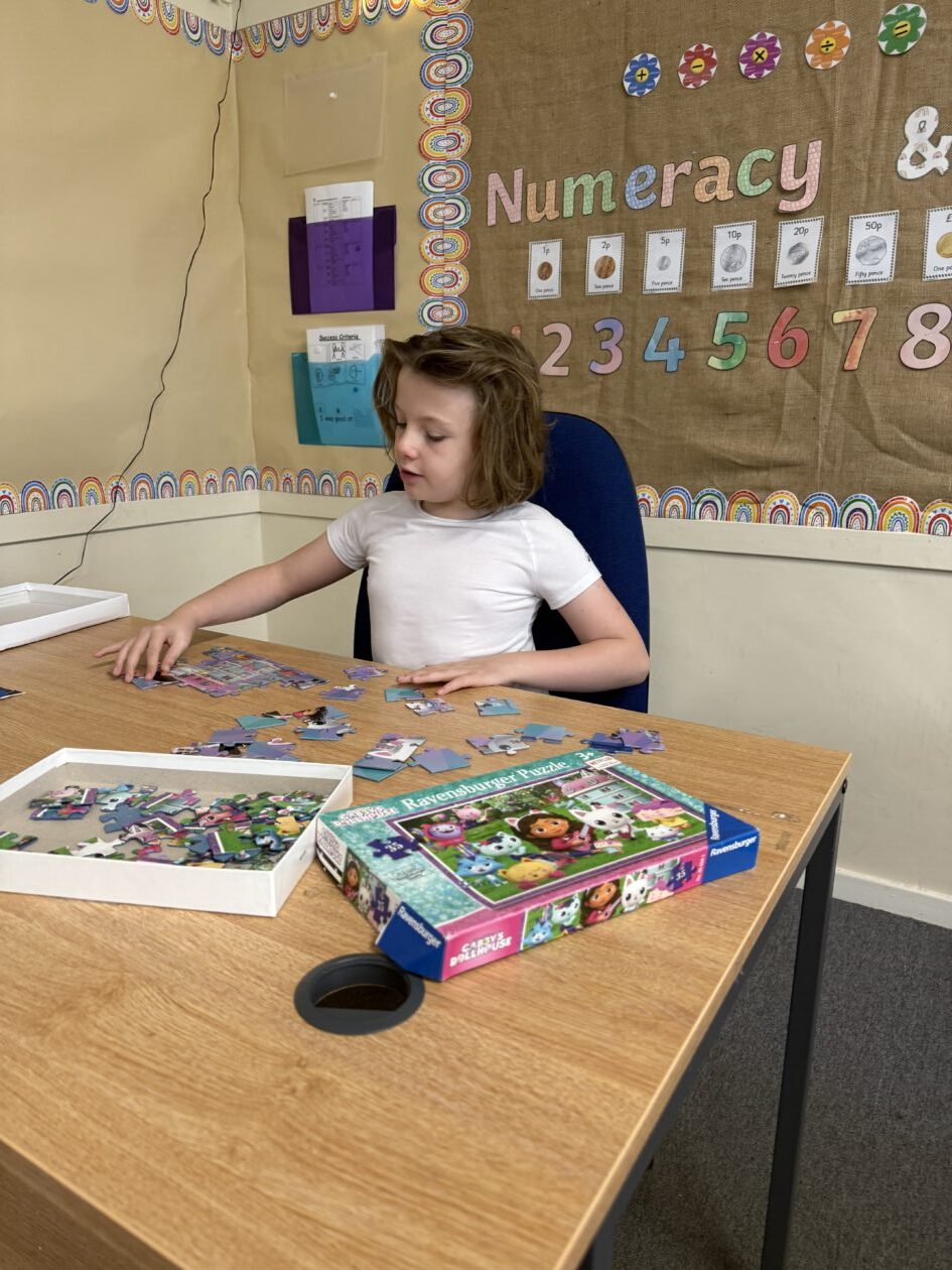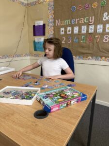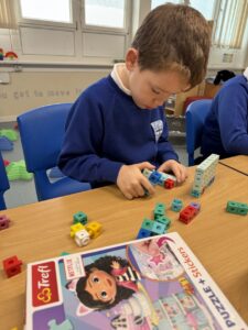 ’L’ has been enjoying doing some new jigsaws. ‘A’ and ‘A’ continue to enjoy building with cubes.