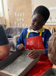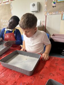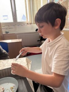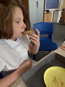 We decorated some biscuits – using our knives to spread the icing then adding some sprinkles.