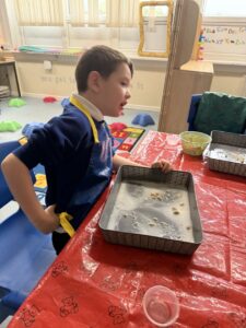 We have been exploring with paint and used our motor skills to make some hedgehogs which we’ve added to our Autumn display.