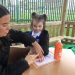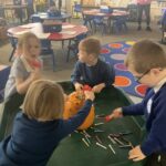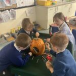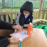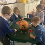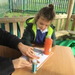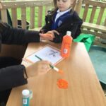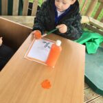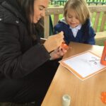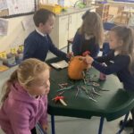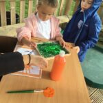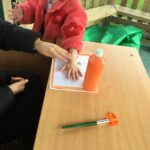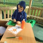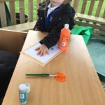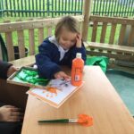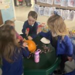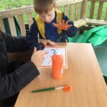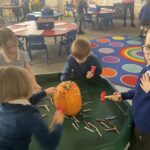 During outdoor learning this week we created pumpkin designs with our handprints.