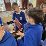 Continuing our celebration of books and reading for enjoyment during this Book Week we went for a visit to West Calder Library. The rain did not put us off and we had a lovely walk into West Calder. Ann the librarian was very welcoming and delighted to see us. She read us a very funny David Walliams book about a little girl who brought her pet snake to school. We then played an alphabet game and we had a little biscuit. We then spent some time looking at the books and we all checked our books out using the machine. Thank you so much to Ann for our lovely visit.