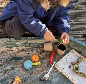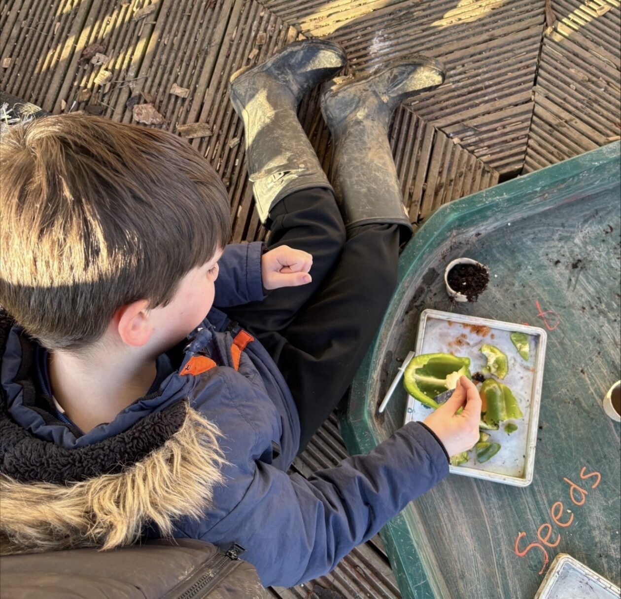 At outdoor learning with Miss Nelson this week the children explored play dough. Last week the children explored the seeds in different fruits and then planted the seeds.