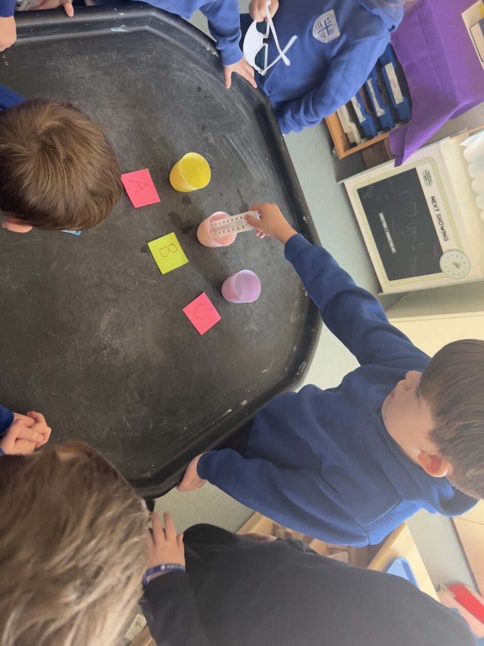 In maths, we began exploring temperature. We carried out a fun investigation where we measured the temperature of three different cups of water. This helped us learn how to read thermometers and compare temperatures, while also thinking carefully about why the water might have different temperatures.