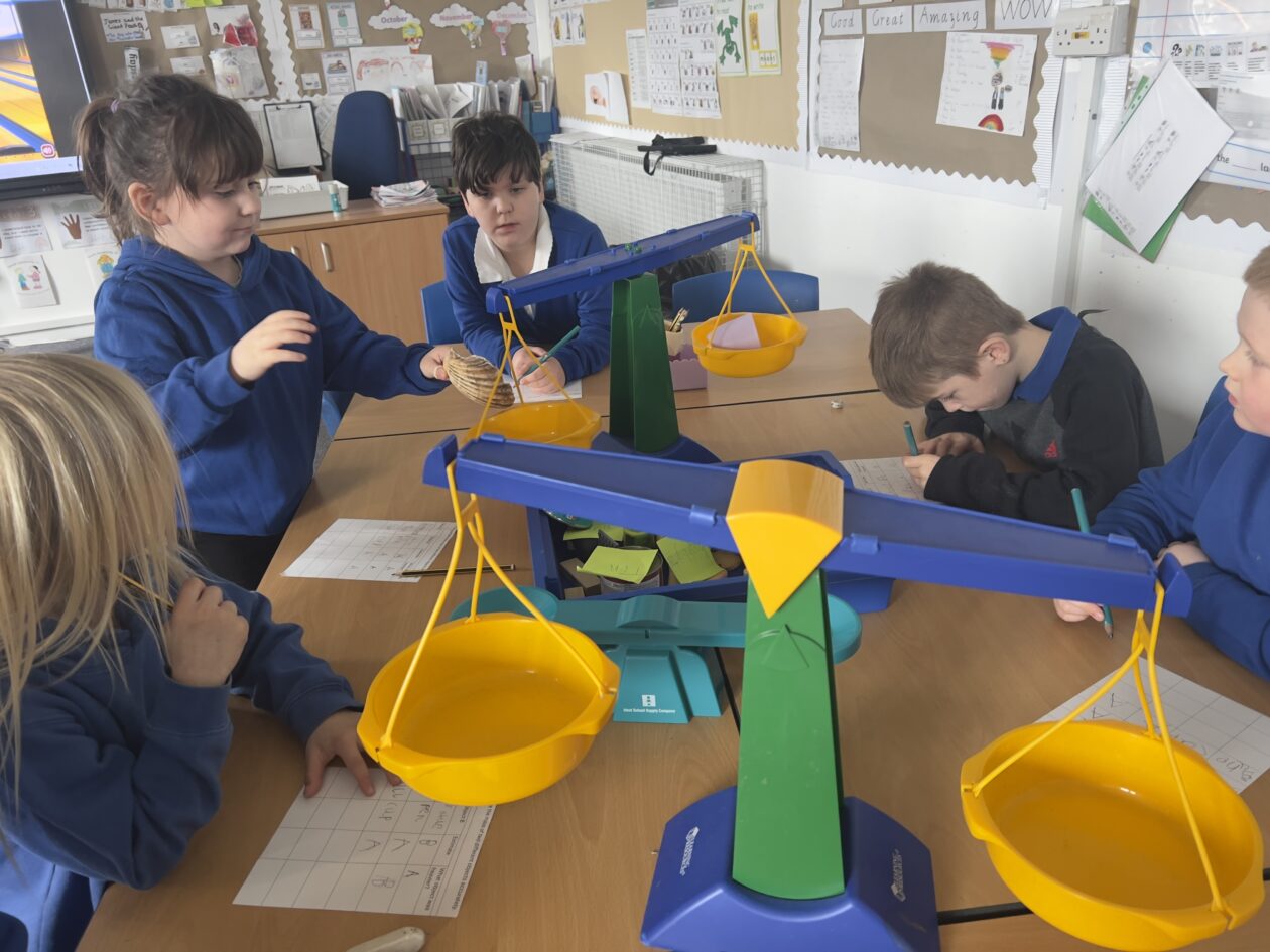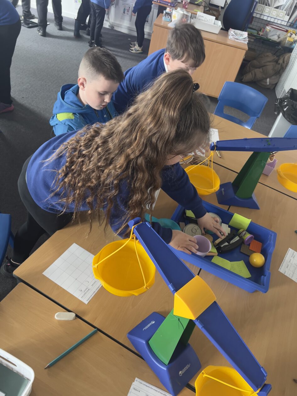 We also carried on with measurement using balance scales. First, we looked at different objects and made our own predictions about which ones would be the heaviest or lightest. Then we used the scales to test our ideas and see if we were right. We talked about what it means when the scales balance and what happens when one side goes down, helping us understand how to compare weight.