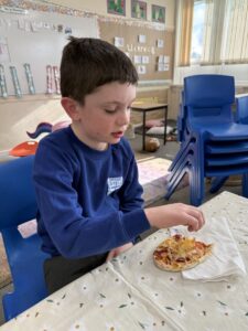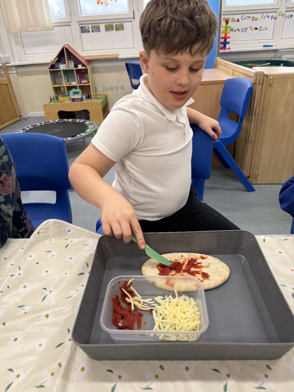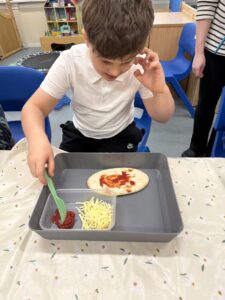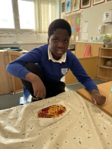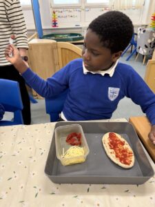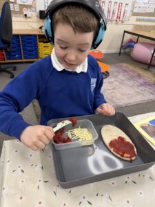 Food technology- we made pitta bread pizzas again – this is definitely one of our favourite food activities!
