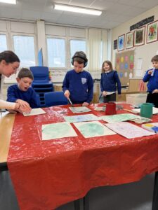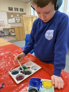 Continuing our Spring art theme we made some lovely blossom tree pictures by printing. We also explored wax resist painting to make some Easter egg art.